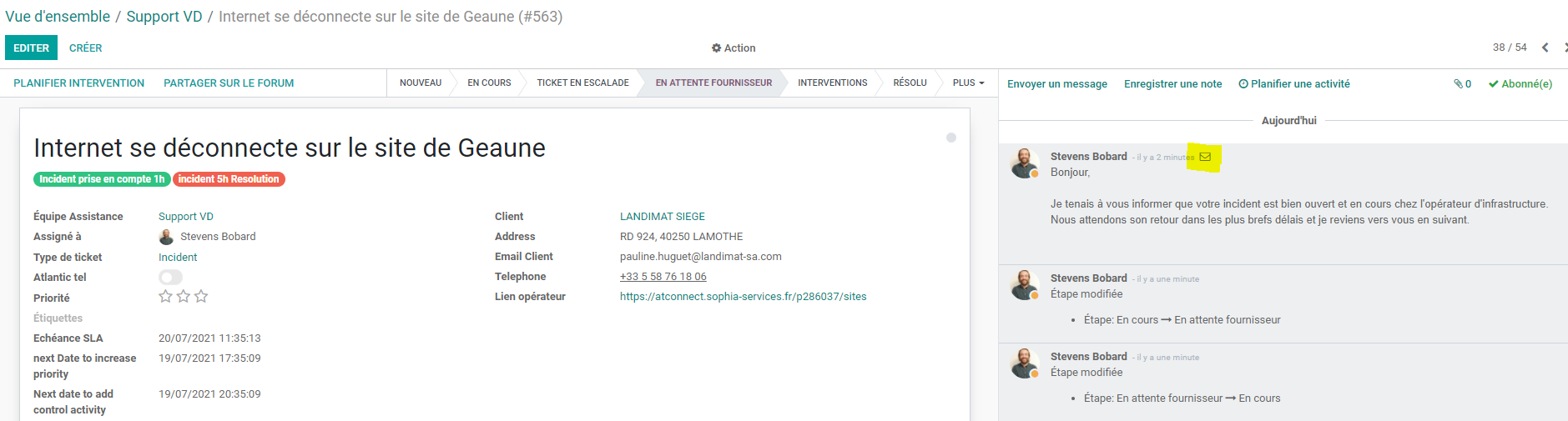 Je viens d’effectuer un test sur un ticket qui était déjà en ‘’attente fournisseur’ (car nous n’avons pas de nouveau ticket), il y a bien la petite enveloppe qui apparait (CF PJ)